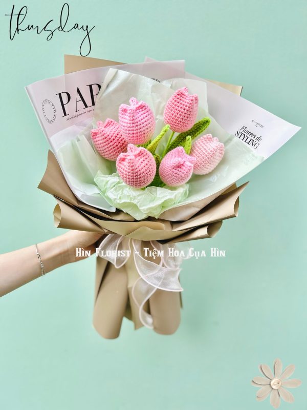 Xu hướng hoa handmade đang dần chiếm được sự ưu ái của giới trẻ gần đây vì độ tỉ mỉ và giá trị thủ công của nó, đặc biệt là hoa đan móc len. Qua đôi bàn tay khéo léo của các thợ thủ công, những sợi len màu sắc đã được biến hóa thành Bó 6 hoa tulip len hồng mềm mại, xinh xắn và cuốn hút một cách đặt biệt.