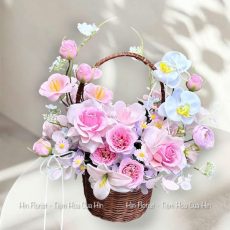 Giỏ hoa sáp mix hồng trắng 48B được tạo nên từ những bông hoa sáp thơm cao cấp và hoa tulip cao su non. Cũng như giấy gói và phụ kiện chính, hoa sáp mà Hìn Florist sử dụng là sản phẩm được nhập khẩu. Hương Thơm và màu sắc của hoa sáp không thua kém gì hoa tươi sẽ khiến bạn vô cùng ngạc nhiên khi nhận được sản phẩm.